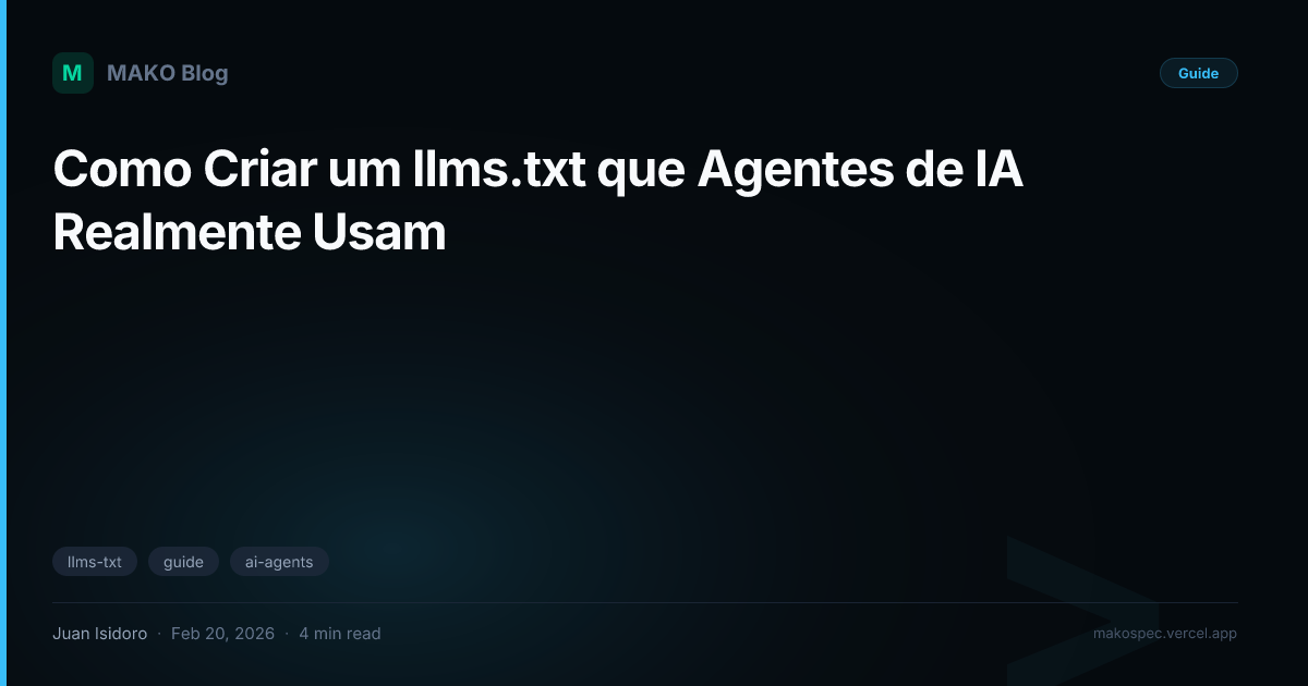 Guia rápido para criar um arquivo llms.txt eficaz — o robots.txt dos agentes de IA. Diga ao ChatGPT, Claude e Perplexity do que se trata o seu site.